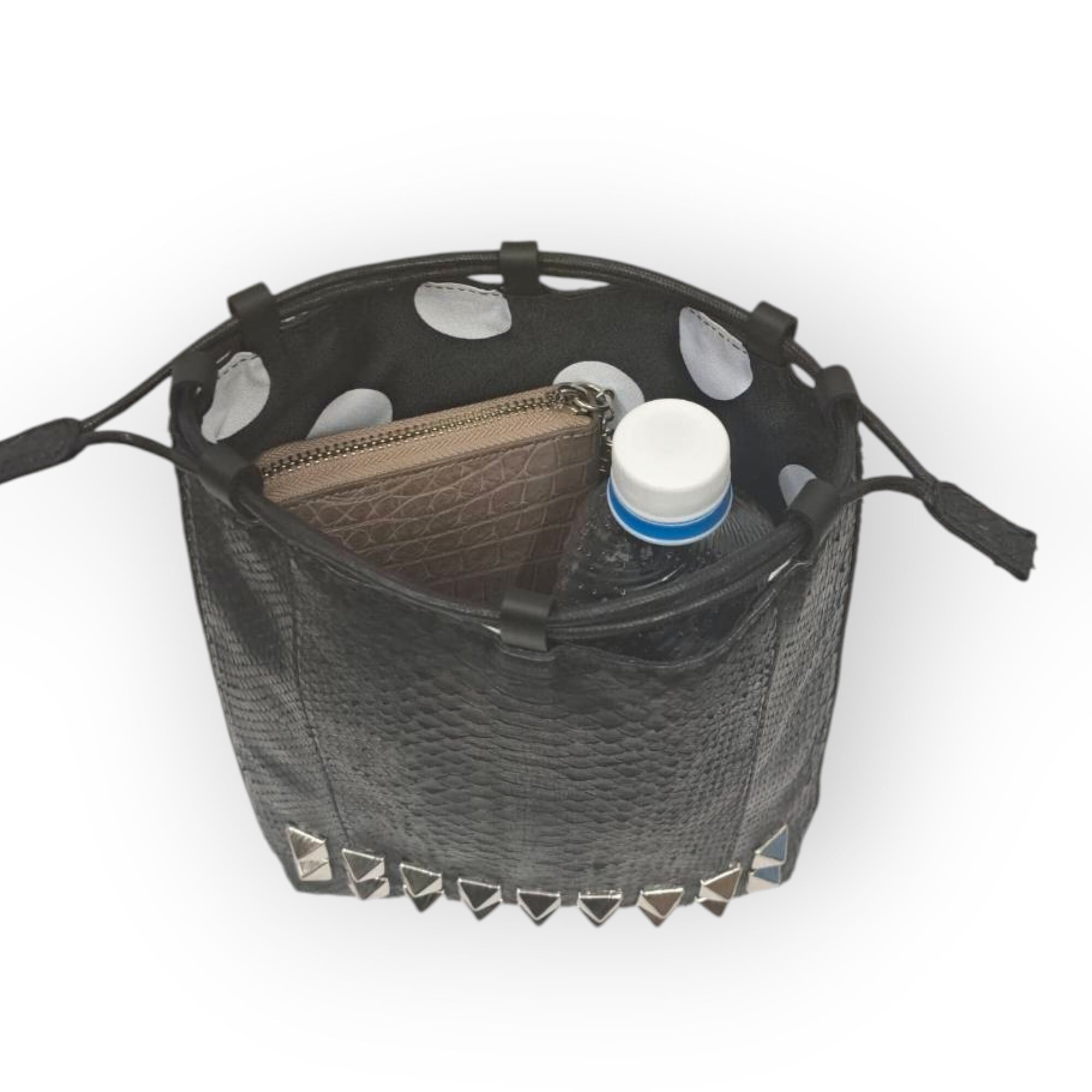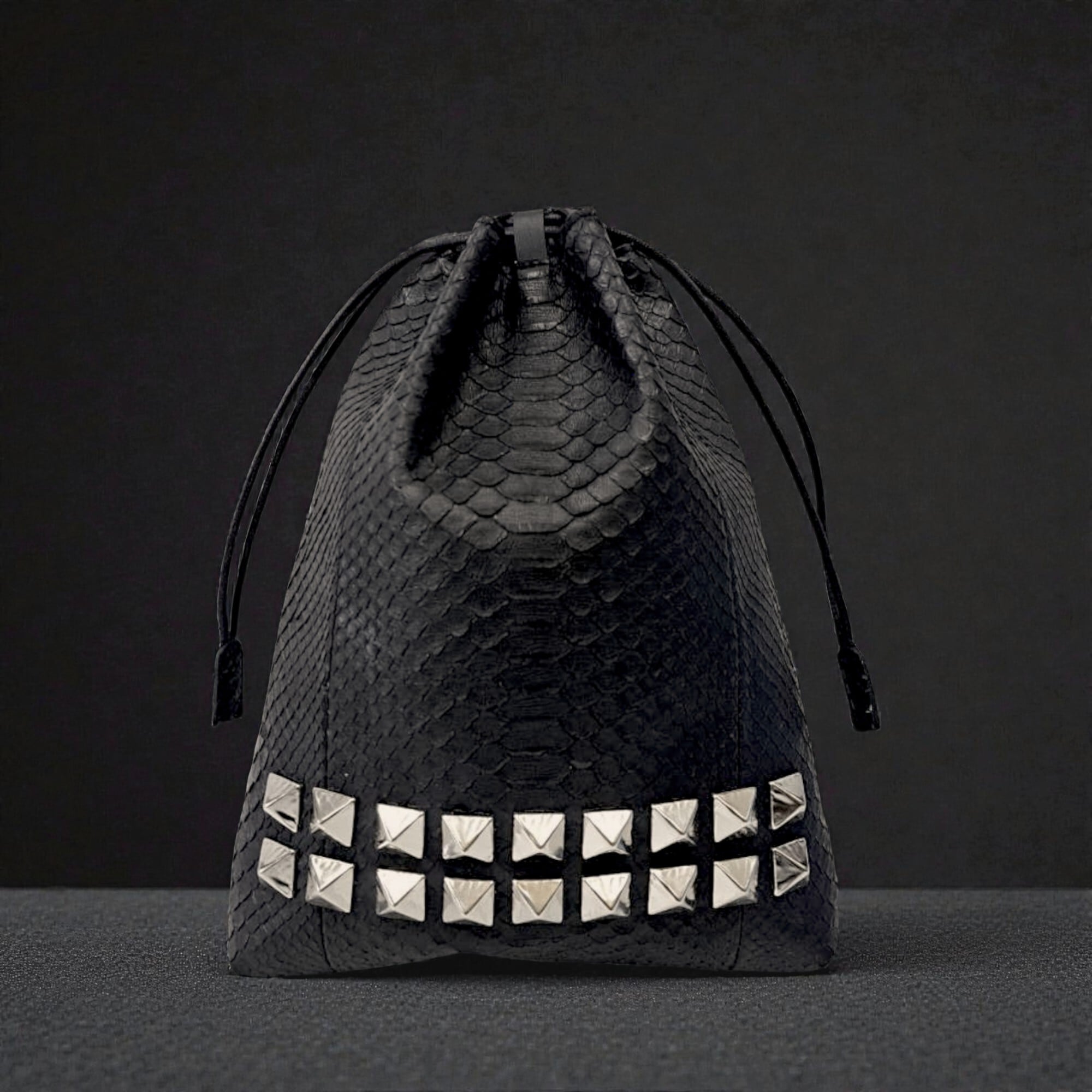 高級ブラックパイソン×スタッズの魅惑的なデザイン