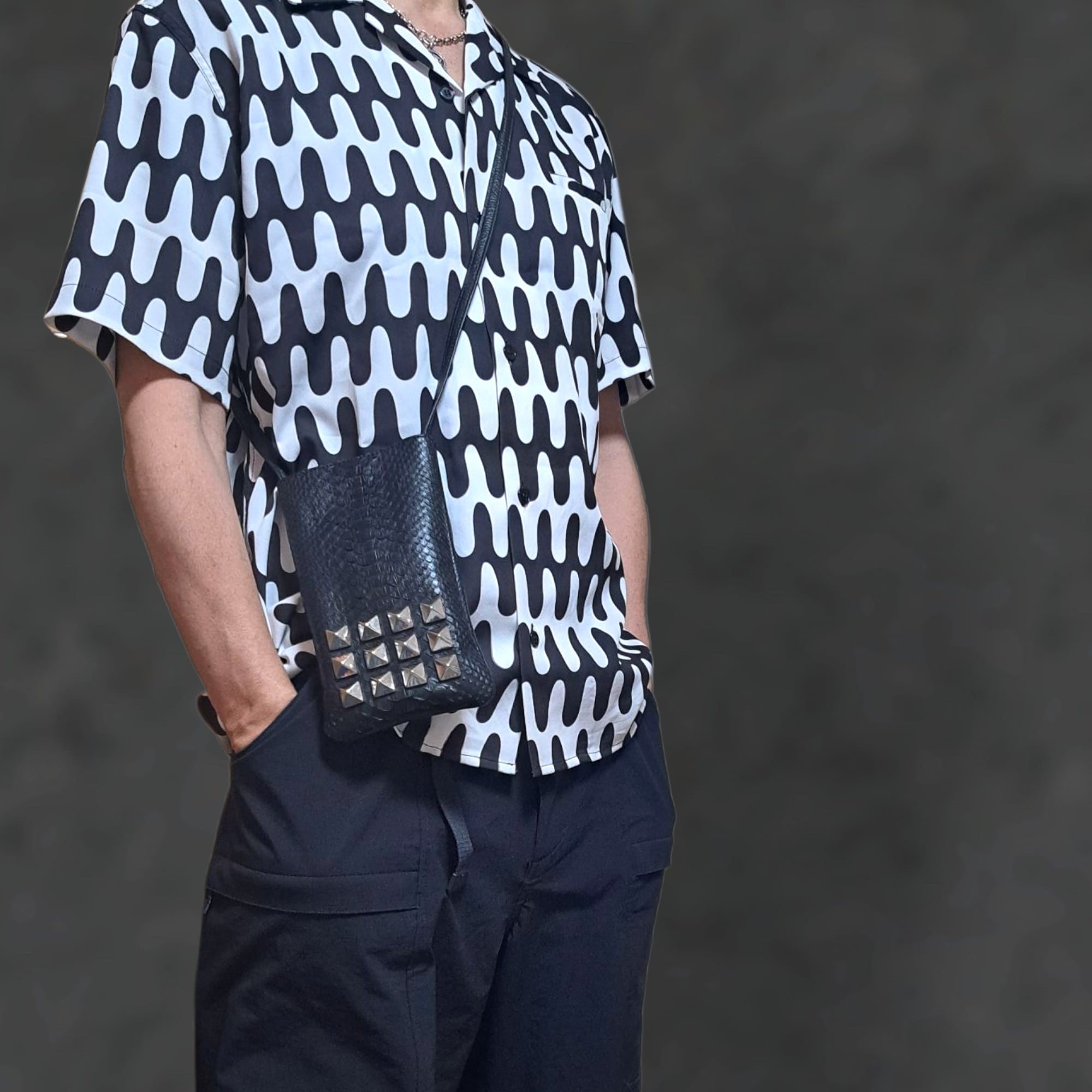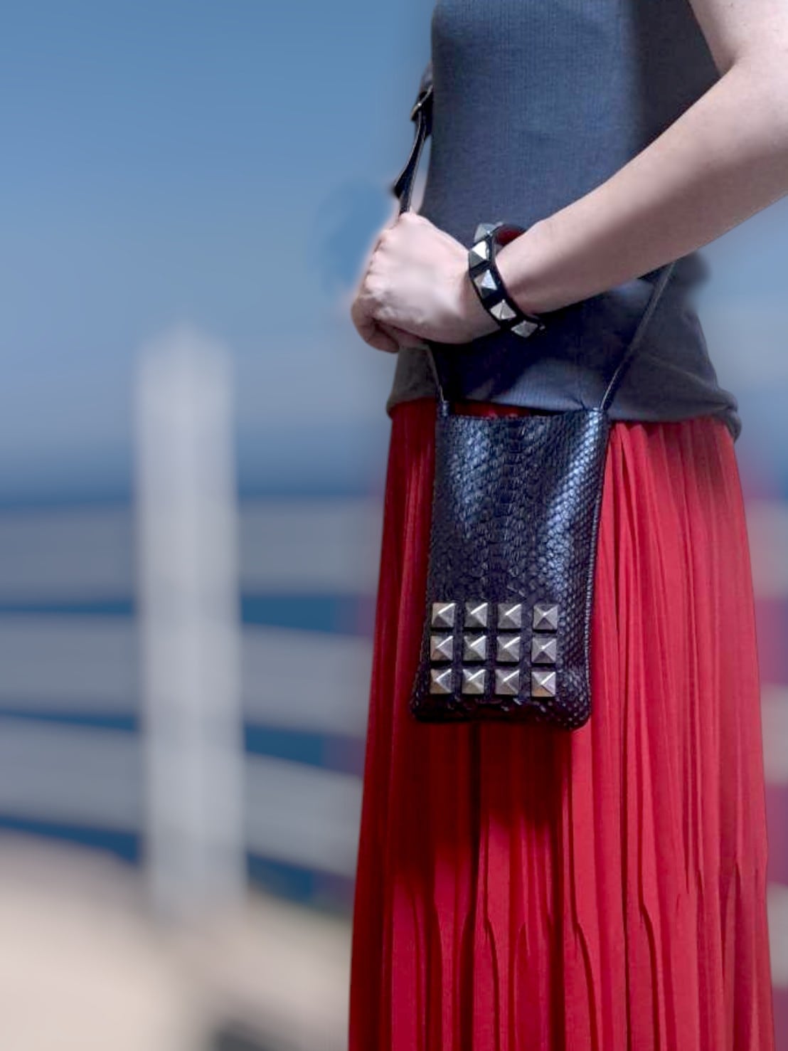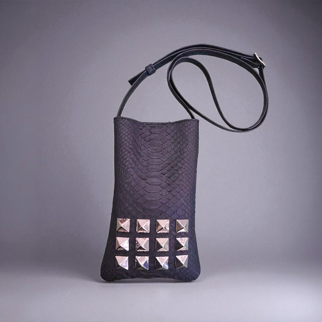 【希少パイソン】スタッズ付きネックポーチ|ミニ財布・スマホ収納対応