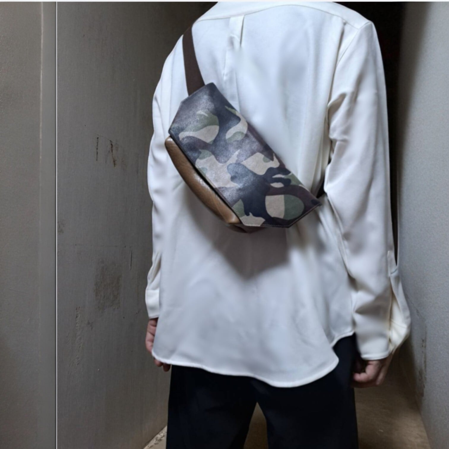 迷彩レザーボディバッグ| 厚地牛革 × 迷彩プリント