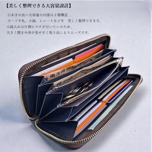 • 大容量の内部構造:5層構造によりカード・札・小銭・レシートを美しく整理可能。