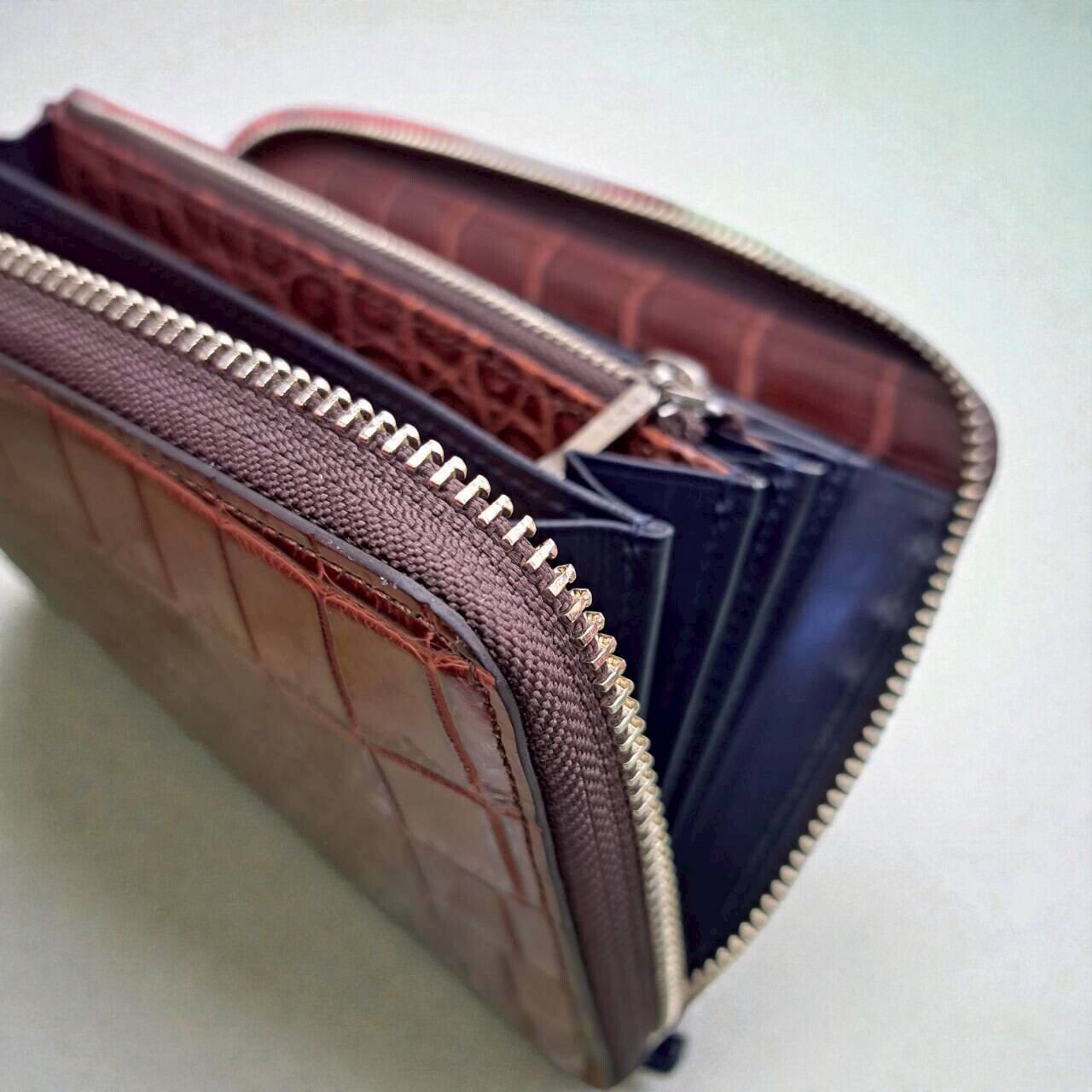 ナイルクロコダイルの一枚取りを贅沢に使用した、