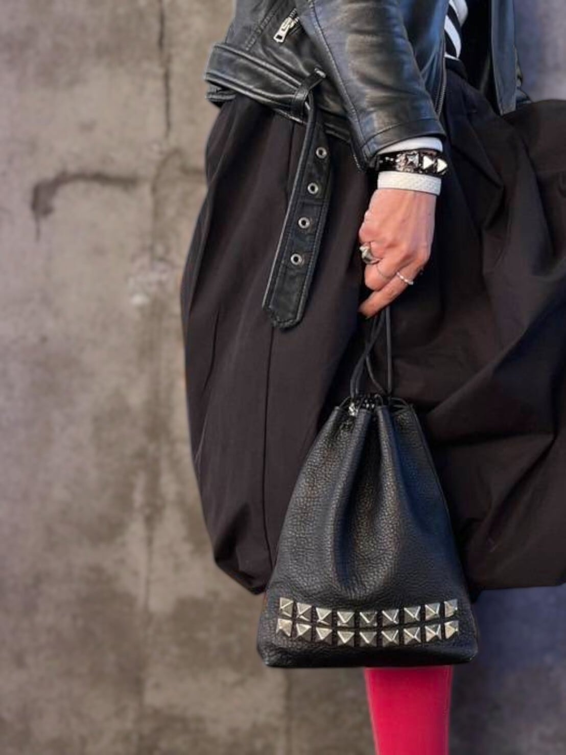 【限定】牛革スタッズ付き|和洋兼用 合切袋バッグ クールデザイン