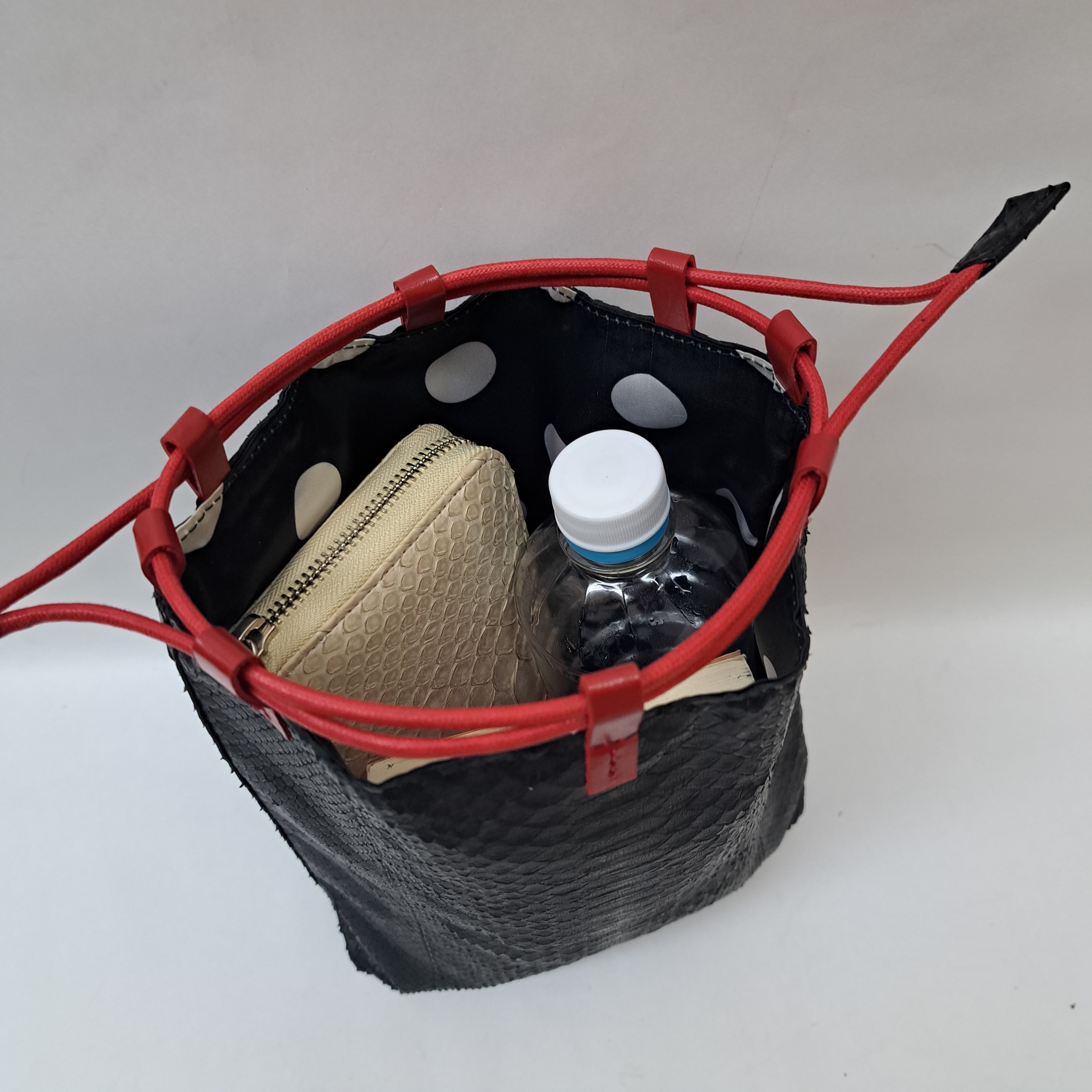 【限定】高級パイソン×赤帯|和洋兼用 合切袋 ミニバッグ