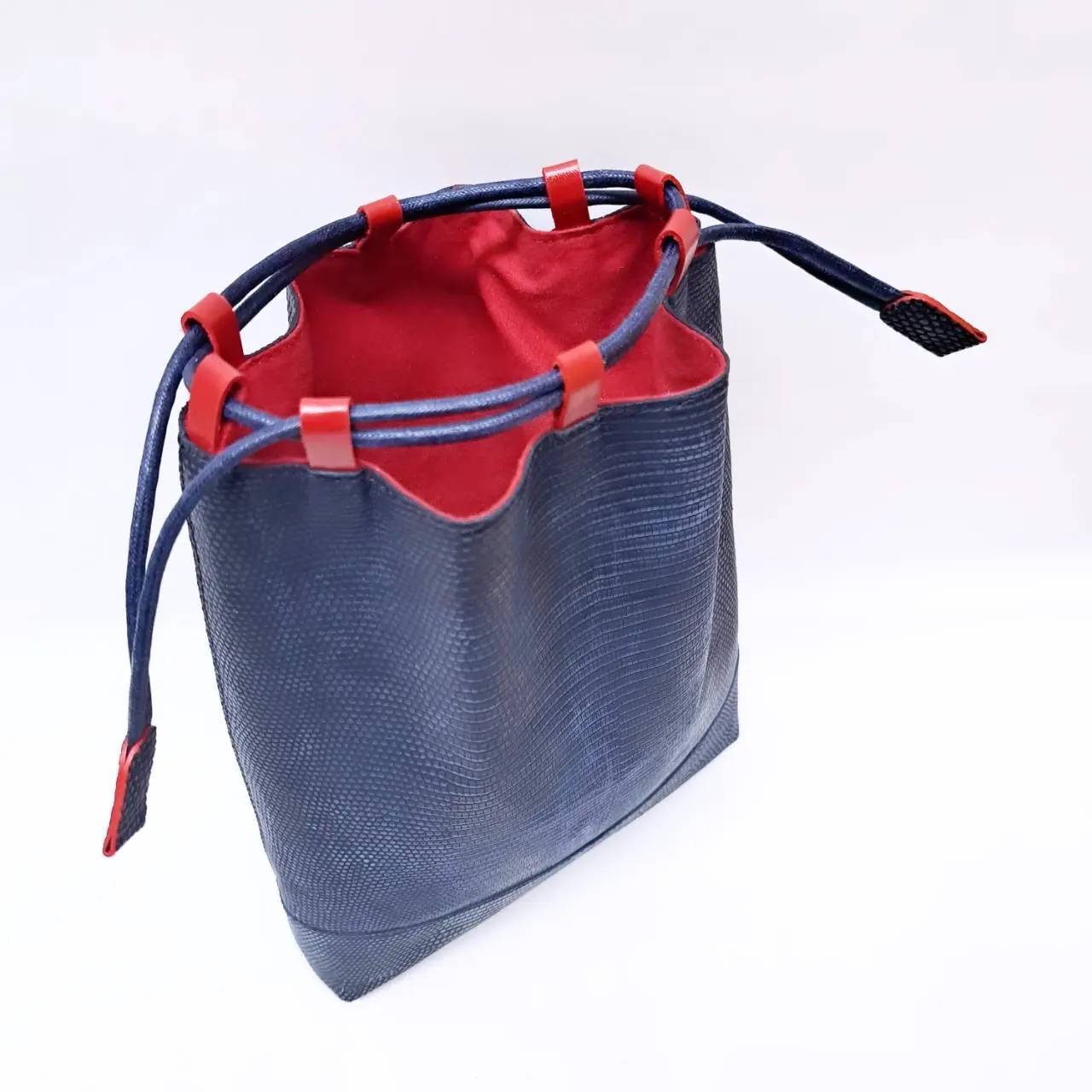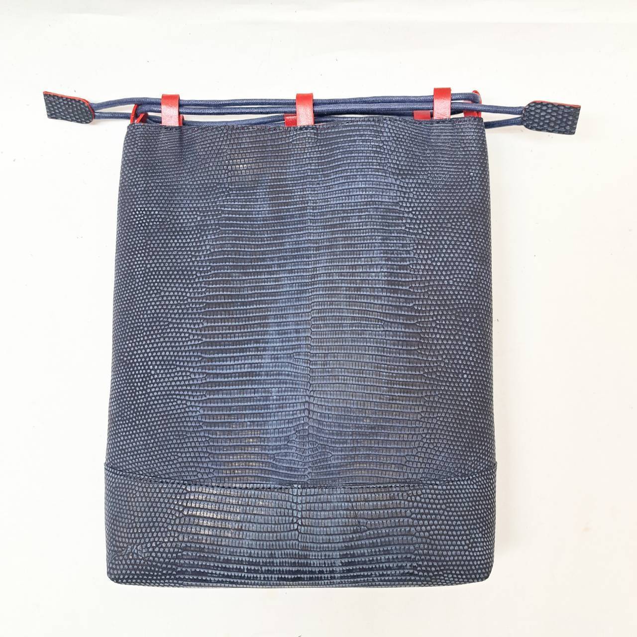 バックカットのリザードを藍色に染め上げ、