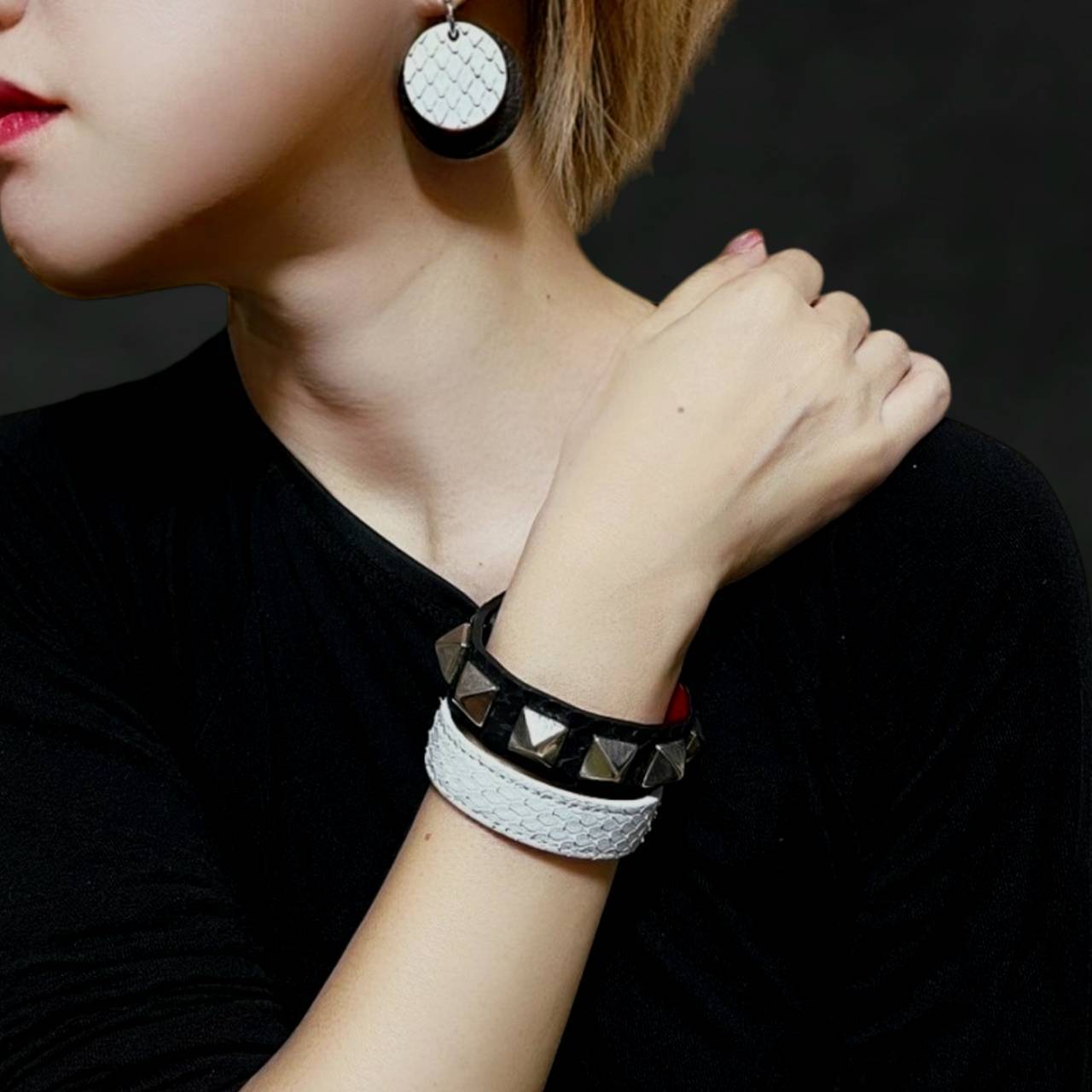 【蛇のピアス】パイソン〈シルバー〉×牛革〈白〉