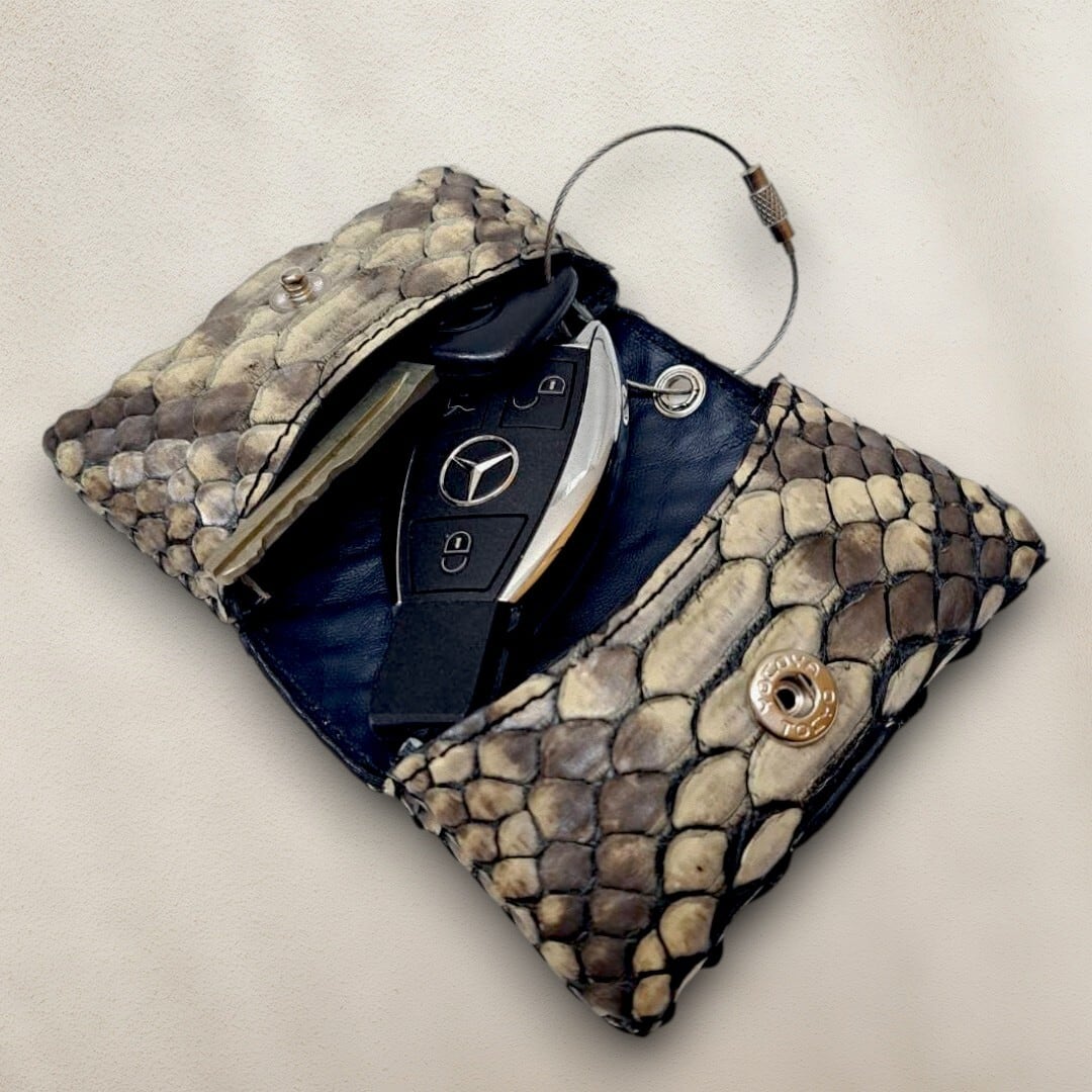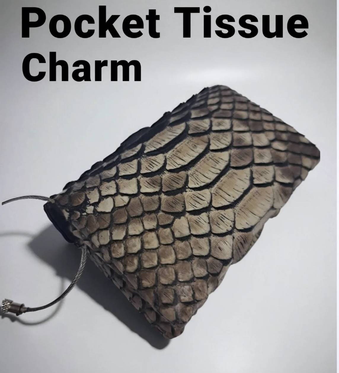 パイソン革のポケットティッシュホルダー。